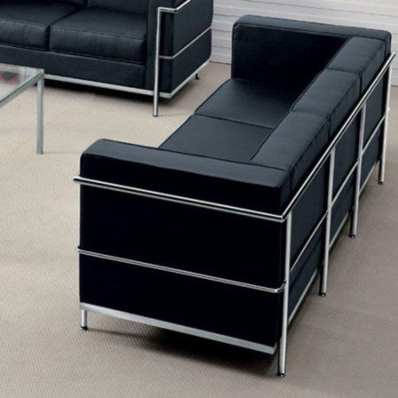 Modern Black Leather Modular Corner Sectional Sofa with Metal Frame