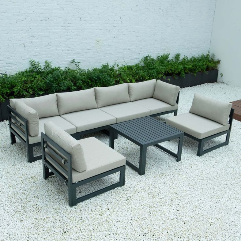 LeisureMod Chelsea 7-Piece Patio Sectional and Coffee Table Set